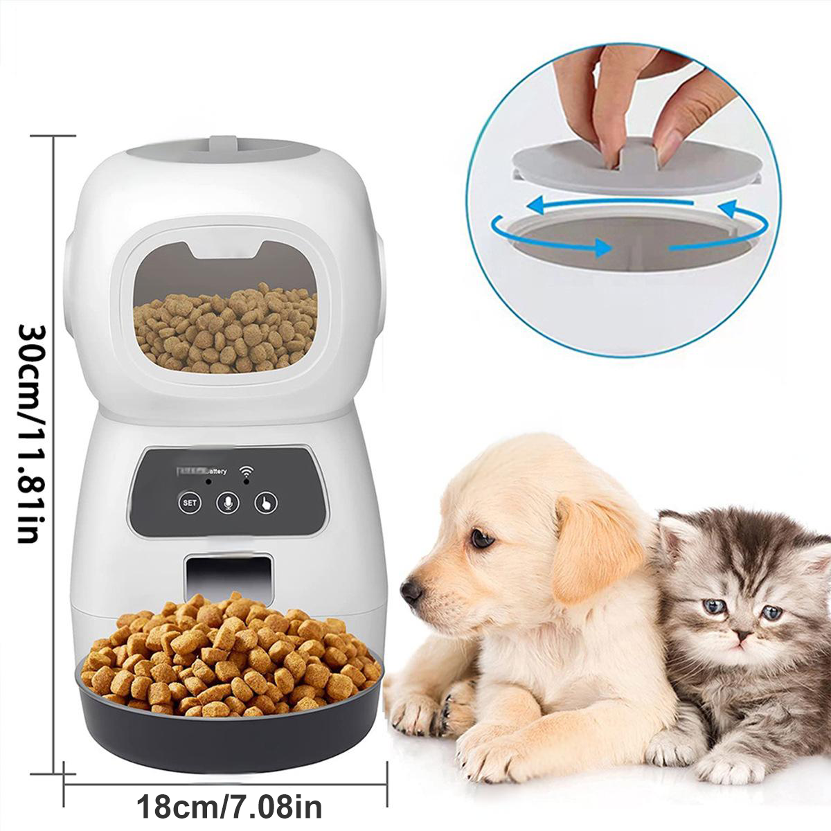 • Permite programar comidas automáticas o administrar porciones manualmente.