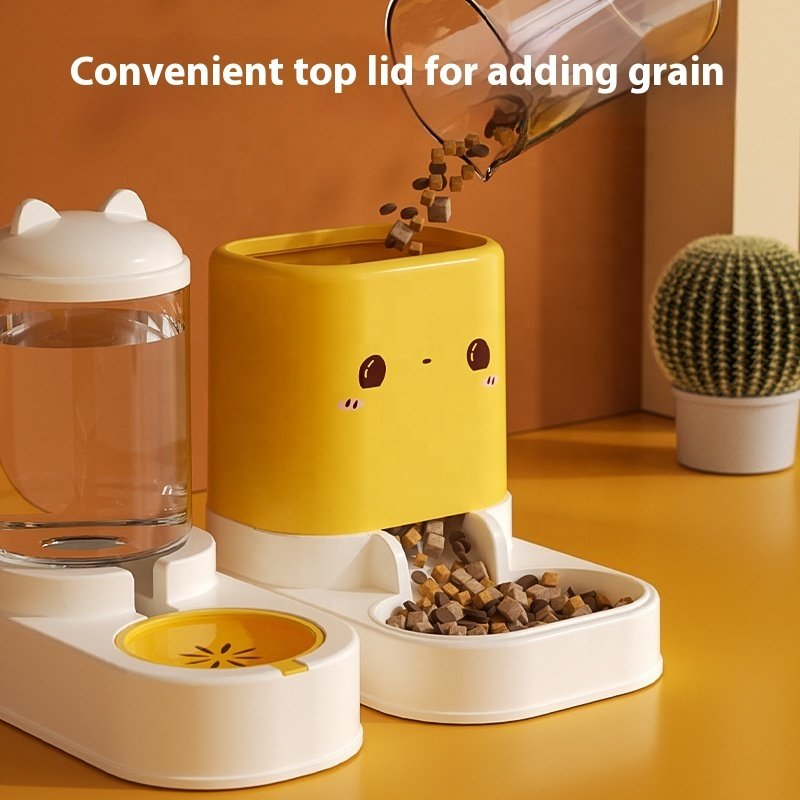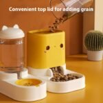 Dispositivo de alimentación y bebedero para mascotas 2 en 1, que integra comida y agua. Funcionamiento completamente automático, pero no requiere electricidad. Sin necesidad de batería, excelente material, especialmente diseñado para gatos, satisfaciendo las necesidades diarias de alimentación. Capacidad de alimento 2 kg y de agua 1 litro.