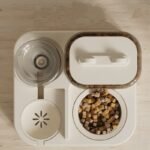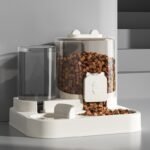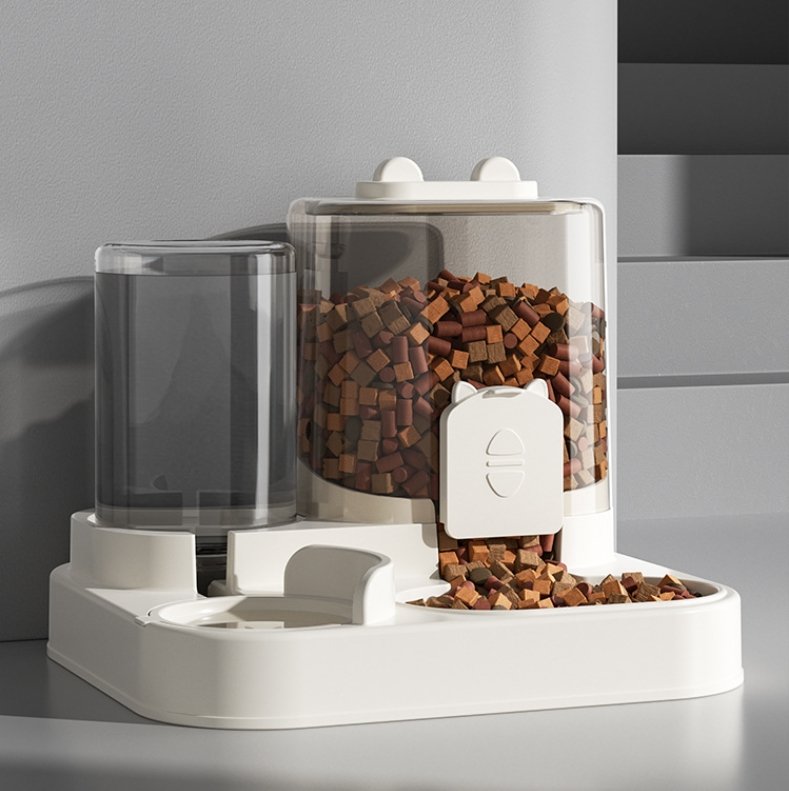 Dispositivo de alimentación y bebedero para mascotas 2 en 1, que integra comida y agua. Funcionamiento completamente automático, pero no requiere electricidad. Sin necesidad de batería, excelente material, especialmente diseñado para gatos, satisfaciendo las necesidades diarias de alimentación. Capacidad de alimento 2 kg y de agua 1 litro.