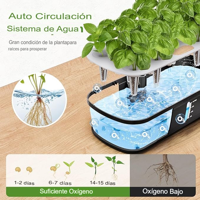 Tanque de agua de 4 litros proporciona un espacio más grande para que las raíces se desarrollen y respiren.