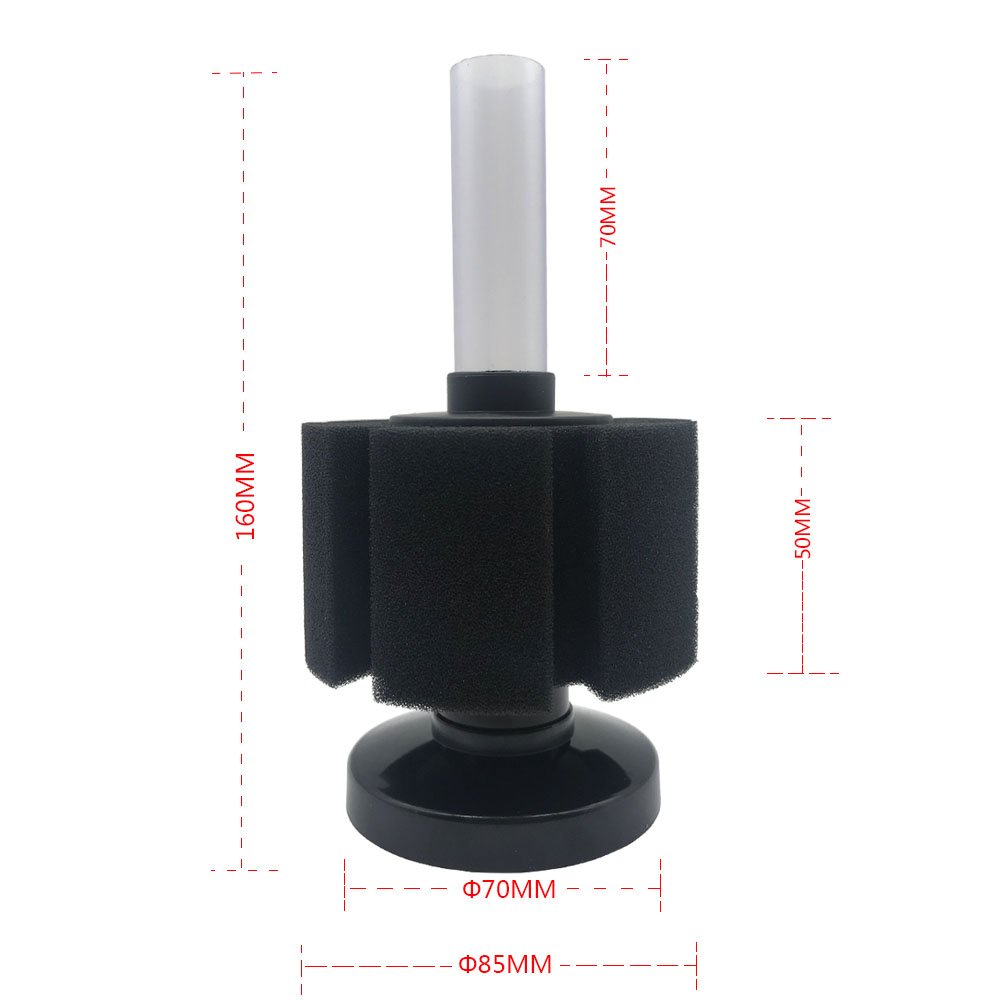Con un sistema de elevación de aire, el filtro superbioquÃmico de esponja presenta un funcionamiento silencioso y tiene un excelente efecto de filtrado al oxiagenar el agua. Permitiendo la filtración mecánica además de la filtración biológica, que descompone los residuos dañinos, el amonÃaco y el material de nitrito, lo que resulta en un ambiente de vida más limpio para sus peces, En particular, son útiles como filtro de crÃa o como filtro secundario.