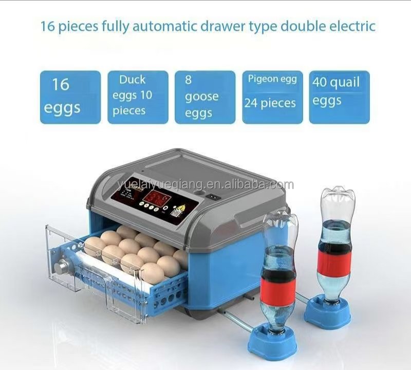 Incubadora con capacidad para 16 huevos.
