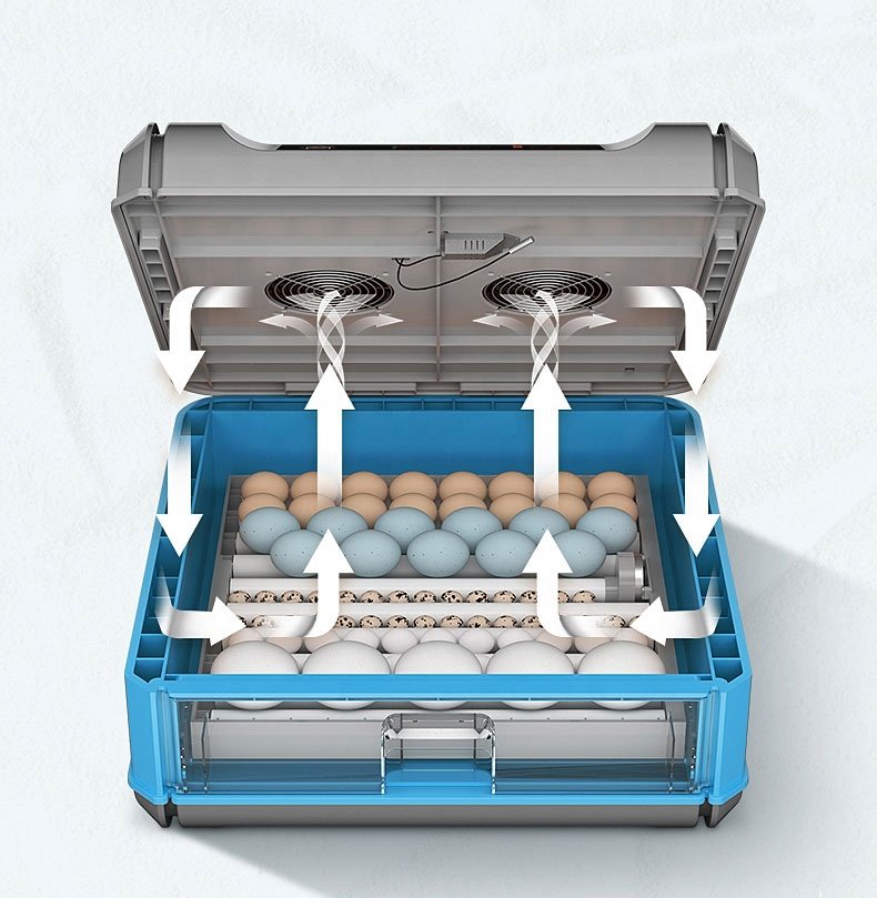 • Cuenta con volteo automático de huevos, control preciso de temperatura y humedad.