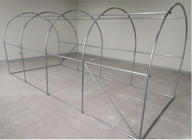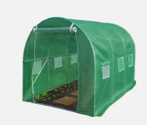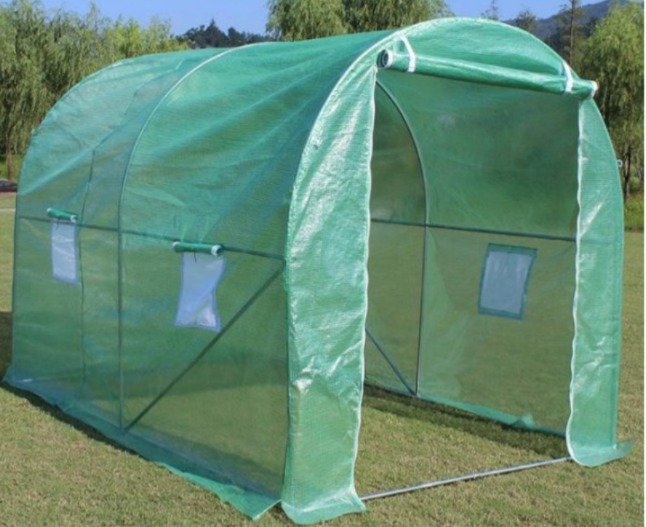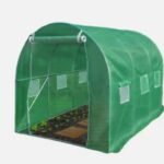 Invernadero tipo túnel. Cubierta construida en PE (polietileno) reforzado que protege sus plantas del daño de los rayos UV. Este material es 100% impermeable y mejora la temperatura interior y la resistencia al viento. La estructura es de caño galvanizado de fácil armado. Cuentan con puntos de agarre para cuerdas y anclajes a tierra para poder tensarlos y que no les afecte el viento. También cuenta con ventanas laterales con costuras de alta calidad y velcro en todo el contorno de las mismas. La puerta de entrada tiene doble cierre reforzado para que sea mucha mas cómoda la entrada y salida.