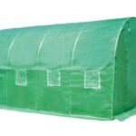 Invernadero tipo túnel. Cubierta construida en PE (polietileno) reforzado que protege sus plantas del daño de los rayos UV. Este material es 100% impermeable y mejora la temperatura interior y la resistencia al viento. La estructura es de caño galvanizado de fácil armado. Cuentan con puntos de agarre para cuerdas y anclajes a tierra para poder tensarlos y que no les afecte el viento. También cuenta con ventanas laterales con costuras de alta calidad y velcro en todo el contorno de las mismas. La puerta de entrada tiene doble cierre reforzado para que sea mucha más cómoda la entrada y salida.