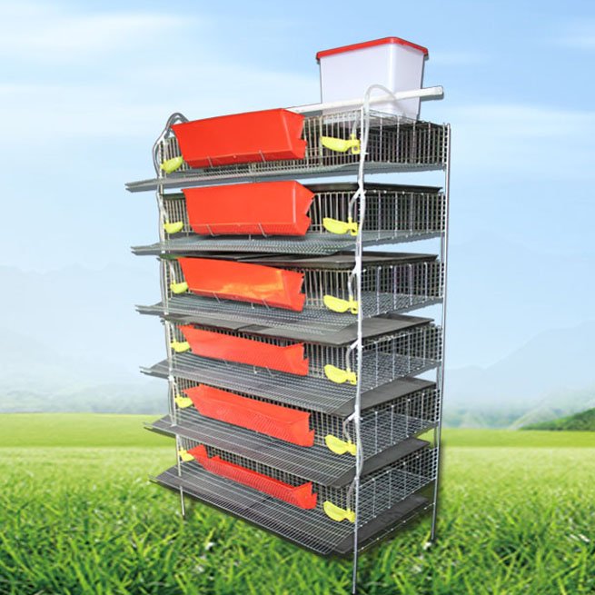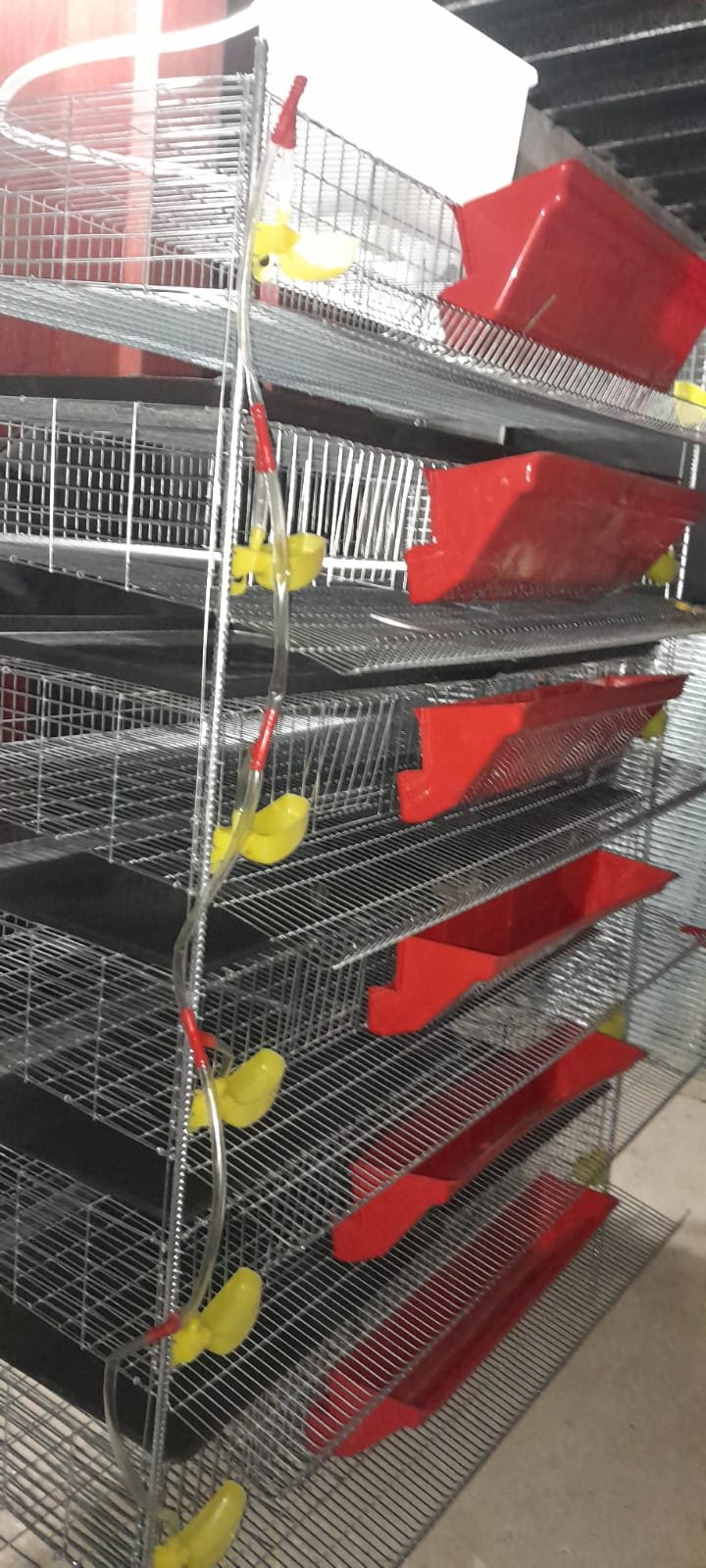 Jaula para 400 codornices ponedoras, caÃda para huevos, tolva para la ración , bebederos automáticos .