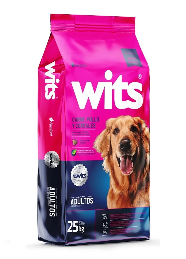 El alimento Wits para perros adultos de 25kg  es una opción de ración seca, balanceada y completa, , diseñada para satisfacer los requerimientos nutricionales. Su fórmula extruida busca aportar energía y proteínas.